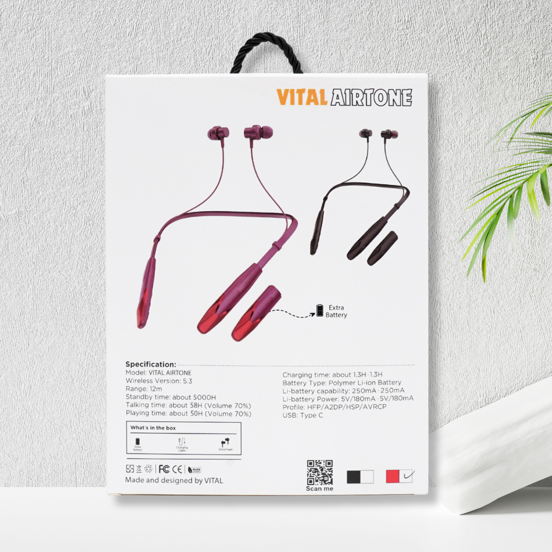 Enhance your calls and music experience with the Vital Airtone Voice Changing Neckband, where innovation meets style and functionality.
